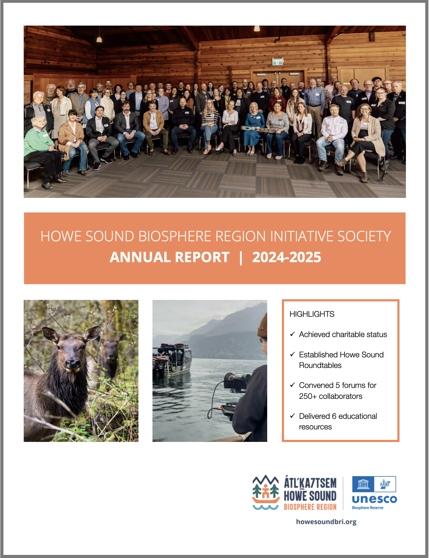 The Howe Sound Biosphere Region Initiative Society was registered as a non-profit organization in 2017. In April 2024 our organization became a registered Charity. Together with many organizations at work in the region we share a passion for the natural beauty, incredible biodiversity, rich cultural heritage, and great sustainable economic potential of Átl'ka7tsem/Howe Sound.