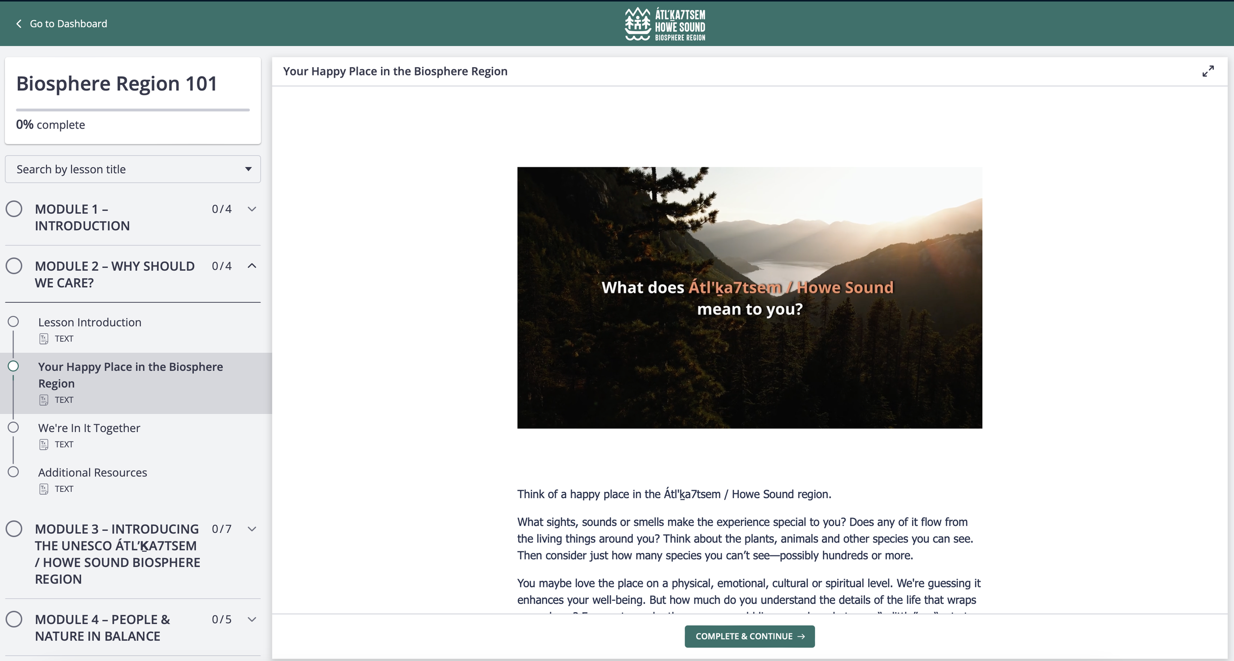 When you work in the tourism sector and hear about Átl'ḵa7tsem / Howe Sound UNESCO Biosphere Region from your employer or a customer, how do you go about being part of the conversation without just looking at them blankly? Answer—you take the new Biosphere 101 online course.