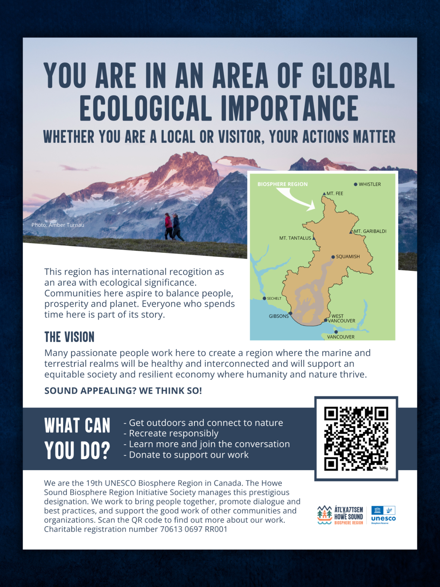 Letter sized poster about the Biosphere Region including a QR Code linking to more information. Multiple Sizes available.
