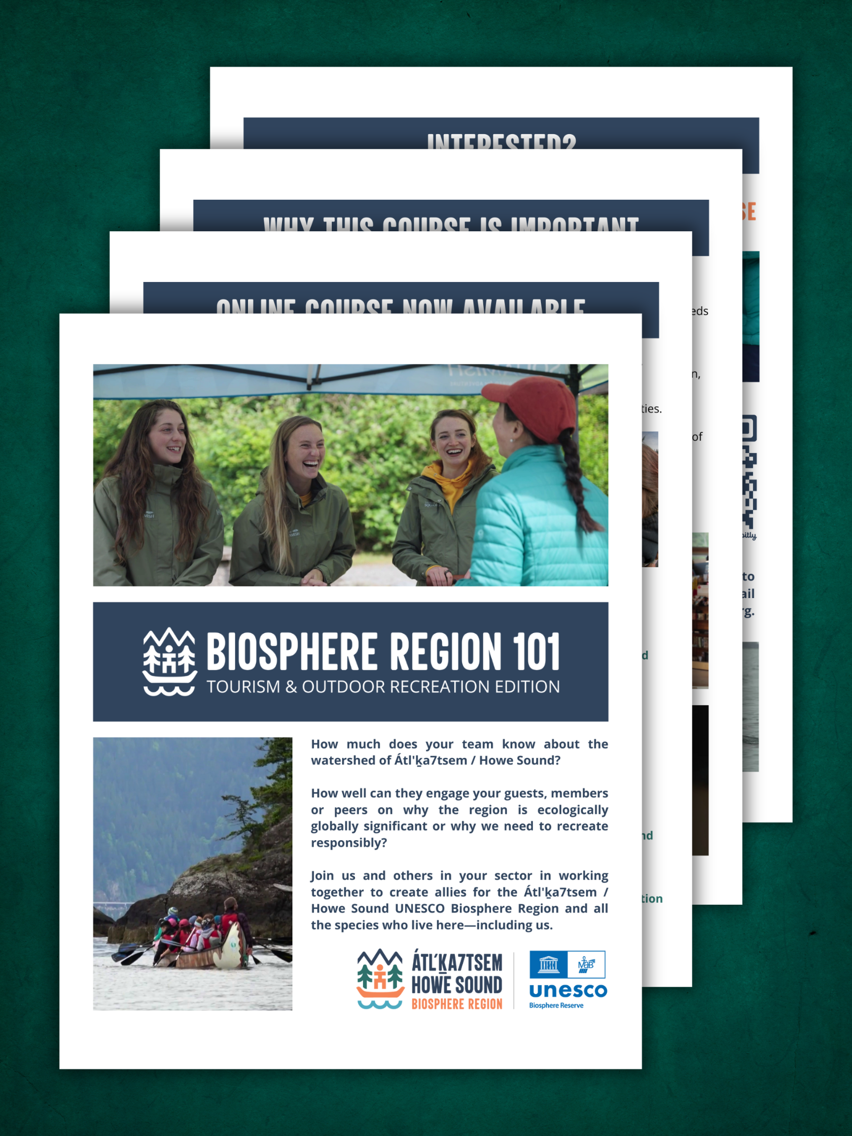 Our 1 Minute Video This is Átl'ḵa7tsem Howe Sound UNESCO Biosphere Region is now live. Digital copies of the video are available upon request.